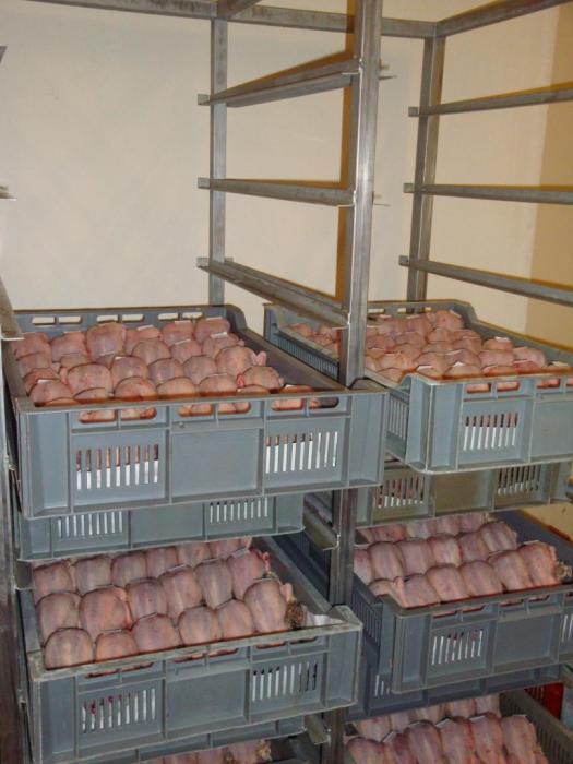 Calibrés étiquetés ils sont refroidis à 4° avant d'être découpés ou emballés.